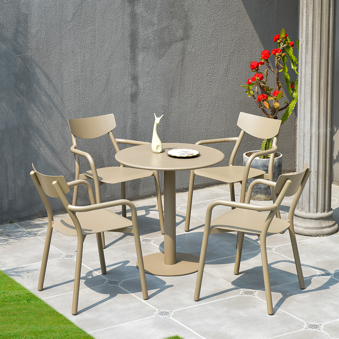The Queen Outdoor Chair features a sleek, minimalist design crafted entirely from durable aluminum, offering a modern and lightweight seating option for any outdoor space.