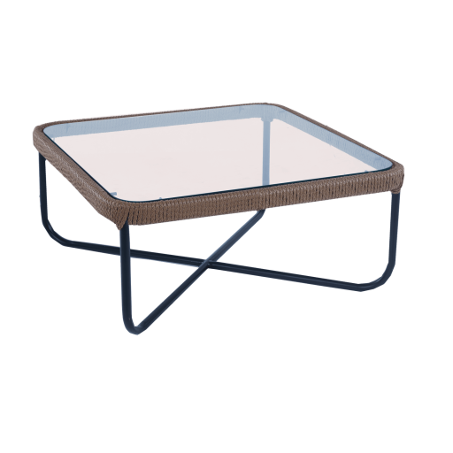 Elevate your outdoor living space with the Terra Center Table, crafted with a durable powder-coated metal framework and intricate nylon weaving for a stylish, modern look. This square outdoor table features a sleek glass tabletop, combining elegance with functionality. Designed for total outdoor use, it withstands the elements while adding a touch of luxury to your patio, terrace, or garden. Perfect as a centerpiece for outdoor seating areas, this table blends contemporary design with long-lasting craftsmanship.